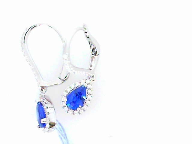 Earrings with Sapphires 18 Karat White Sapphires Earrings 2 Center Sapphires Shape: Pear With 60 Round Diamonds 0.20 ctw