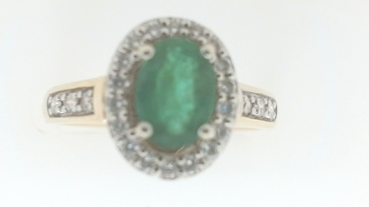 Emerald Estate Ring 10 Karat Yellow Green Emerald Ring With Finger Size 7.5 Gram Weight 3.42 1 Center Emerald 0.75ct Shape: Oval; Colour: Green With 24 Round Diamonds 0.25 ctw