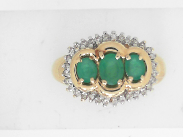 3 Center Emeralds Shape: Oval With 30 Round Diamonds