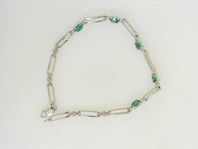 Estate Bracelet With Emeralds 14 Karat White Emeralds Bracelet Length: 7in Gram Weight 3.99 5 Center Emeralds Shape: Oval