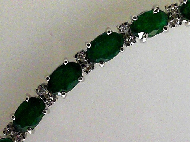 Estate Bracelet With Emeralds 14 Karat White Emeralds Bracelet Length: 7in Width: 4.7mm Gram Weight 10.4 23 Center Emeralds Shape: Oval With 46 Round Diamonds 0.34 ctw