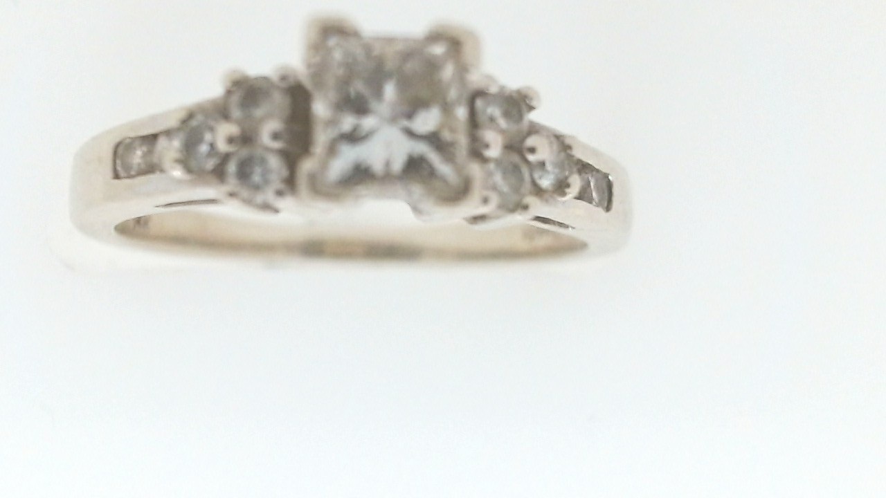 1 Center Diamond 0.46ct Shape: Princess; Clarity: VS2; Colour: F; GIA 2151741567 With 10 Round Diamonds 0.28 ctw 0.74