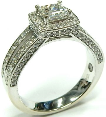 1 Center Diamond 0.56ct Shape: Princess; Clarity: SI2; Colour: H With 116 Round Diamonds 0.86 ctw 1.42