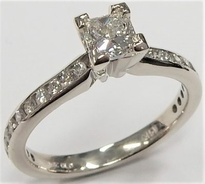 1 Center Diamond 0.56ct Shape: Princess; Clarity: I1; Colour: H With 22 Round Diamonds 0.19 ctw 0.75