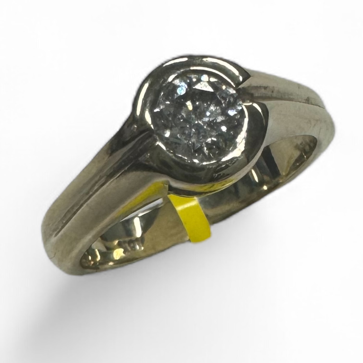 18 Karat White Estate Engagement Ring Width 3.1mm
