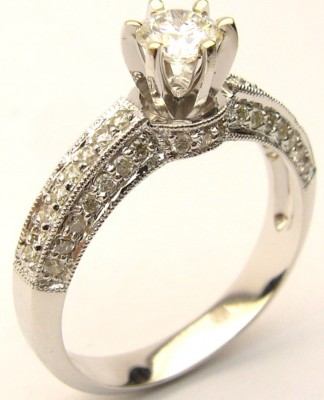18 Karat White Estate Engagement Ring Width 3.1mm