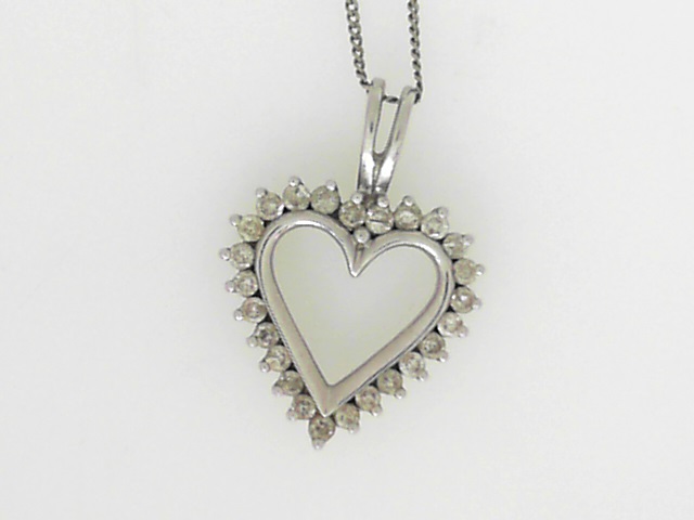 Estate Diamond Pendant/Necklace 10 Karat White Estate Diamond Pendant Gram Weight 2.94 Chain Style: Curb 10 Karat White 18 25 Center Diamonds Shape: Round