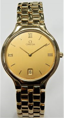 Estate Omega Dress Year: 1985 Vendor Style #: 4130.1300 SN: 48159271 32mm 18 Karat Dial: Champagne hash Box Not Included/Papers Not Included Condition Very good 1 Year Warranty