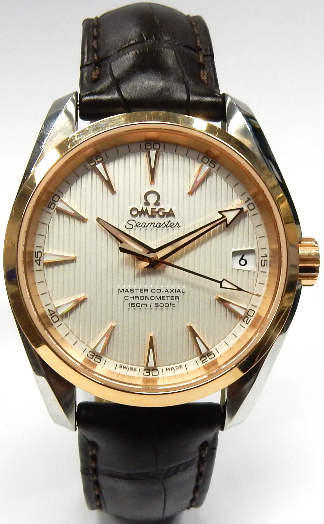 Estate Omega Dress Year: 2015 Vendor Style #: 231.23.39.21.02.001 AquaTerra SN: 87437411 39mm 18K/Stainless Steel Dial: Silver arrow Box Included/Papers Included Condition Very good 1 Year Warranty