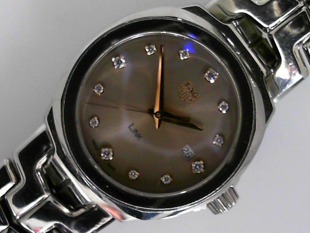 Estate Tag Heuer Dress Vendor Style #: WBC131E-0 Link SN: WTE5059 32mm StainlessSteel Dial: Taupe Rose diamond Box Included/Papers Included Condition Excellent 1 Year Warranty
