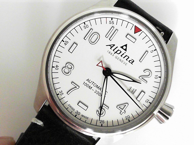 Gents Alpina automatic StarTimer Pilot AL-525S4S6 with box and extra strap white dial.