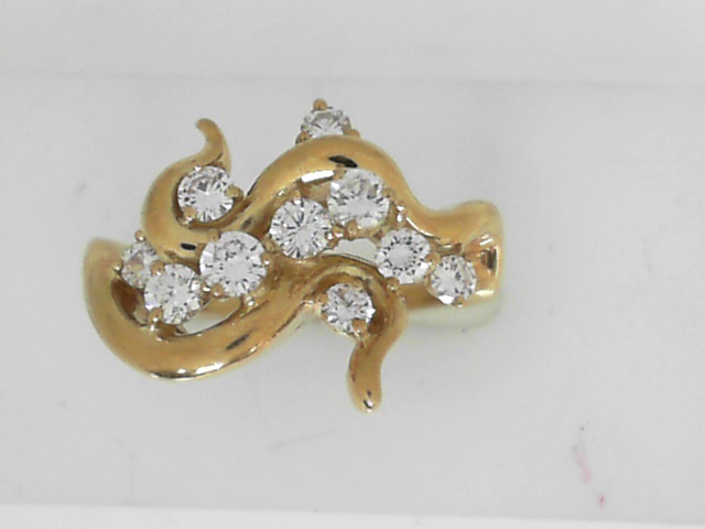 Lady’s Yellow 22 Karat Contemporary Estate Dinner Ring Size 7.75 With 10=0.66Tw Round F Vs Diamonds Discount: 40
