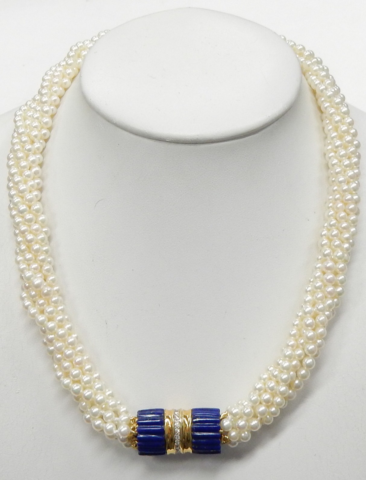 100 Center Pearls Shape: Round With 1 Various Shapes Lapis and 18 Round Diamonds
