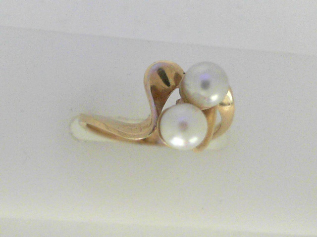 10 Karat Yellow White Pearls Ring With Finger Size 6