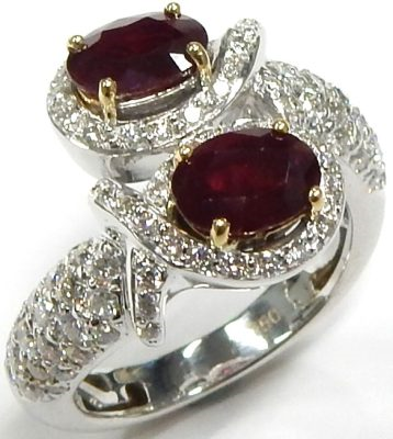 2 Center Rubies Shape: Oval; Colour: Red With 91 Round Diamonds 1.36 ctw