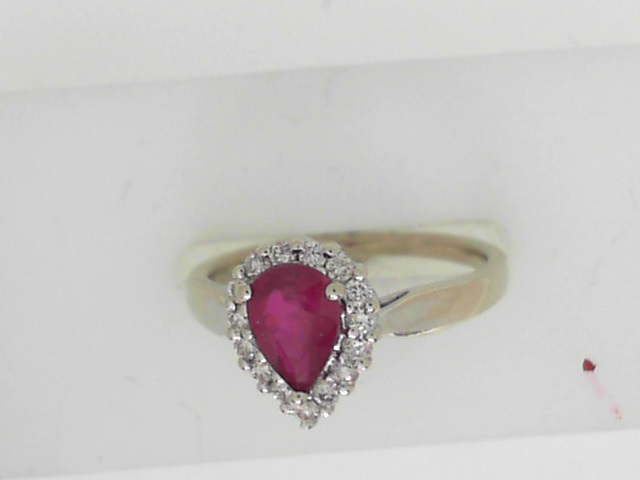 1 Center Ruby 0.66ct Shape: Pear With 15 Round Diamonds 0.20 ctw