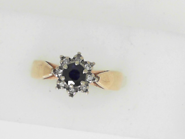 1 Center Sapphire Shape: Round; Colour: Blue With 8 Round Diamonds 0.08 ctw