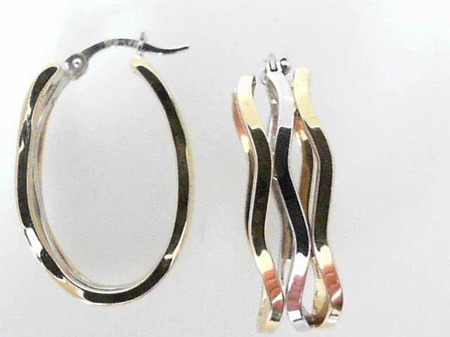 Yellow/White 18 Karat Polished Medium Hoop Estate Earring
